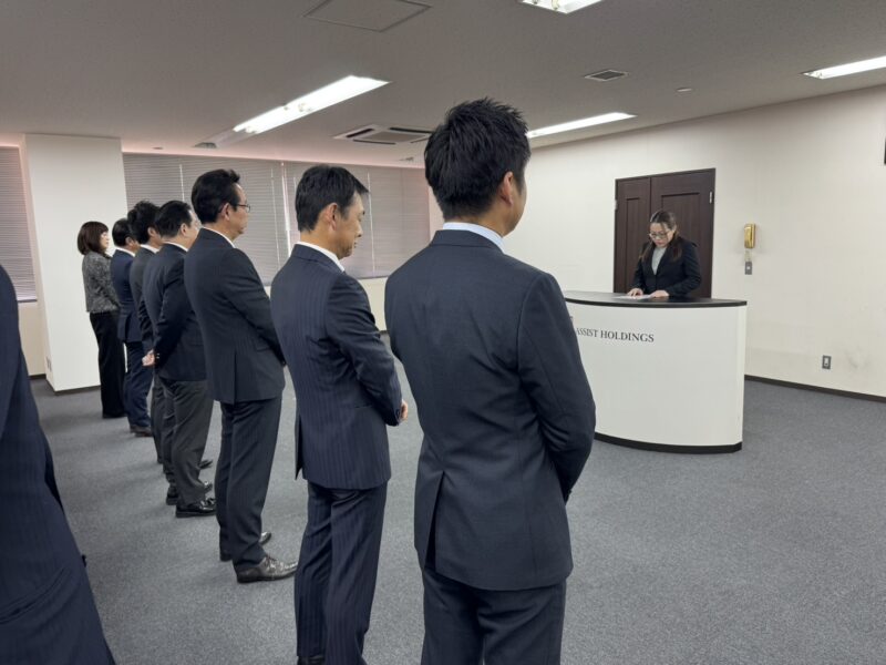 毎年始業日に本社勤務の社員が集まり互礼会を行います。
